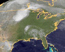 Ein kräftiges Tief über dem Südwesten Kanadas lenkt von Nordwesten kühle Luft heran. An der zugehörigen Kaltfront hat sich über den nördlichen Great Plains ein massives Wolkengebiet gebildet. Hier kommt es zu Starkregen und kräftigen Gewittern. Weitere Schauer oder Gewitter können im Bereich der Bewölkung im Südosten der USA entstehen, wo warm-feuchte Luft liegt.