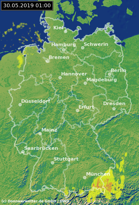 Radarbild von Donnerstag, 30.05.2019 um 01.00 Uhr