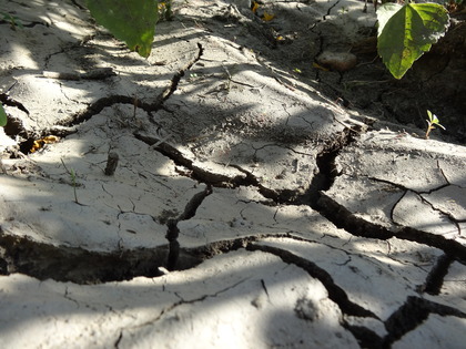 Für die Böden und Pflanzen ist der Juli bisher schwierig. Starkregen lässt das Wasser oberirdisch abfließen. Tiefere Schichten des Bodens leiden weiterhin unter der Trockenheit. Die folgende Hitze der kommenden Tage lässt die Bodenschollen aufplatzen, wie auf diesem Bild in einem Sonnenblumenfeld.