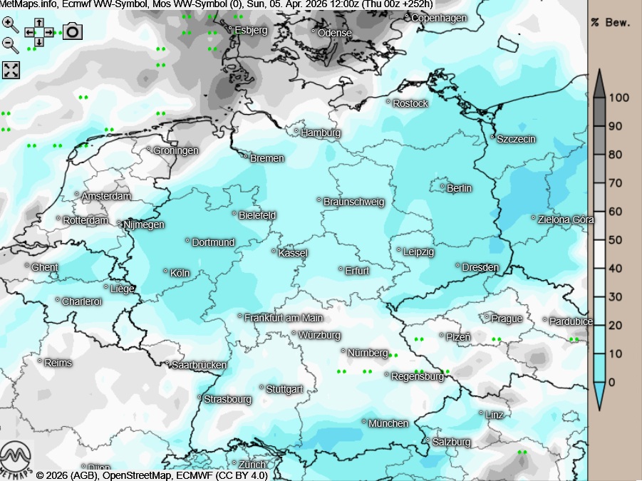 Wetter ECMWF Ostersonntag, 12:00 Uhr