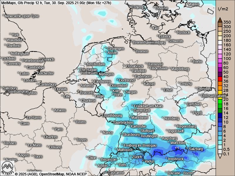 12-Stunden-Regenmengen Dienstag bis 21:00 Uhr