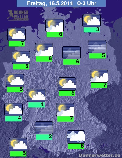 Auch in der zweiten Nachthälfte gibt es kaum Veränderung. Die Tiefstwerte in der Nacht zum Freitag erreichen dann bei lockerer oder aufgelockerter Bewölkung, im Westen teils klarem Himmel mit örtlicher Nebelbildung, um 7 bis 3 Grad.