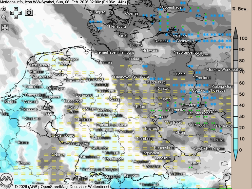In der Nacht zu Samstag bleibt der Himmel dagegen vielerorts stark bewölkt. Die größten Wolkenlücken zeichnen sich derzeit im äußersten Westen sowie im Allgäu ab.