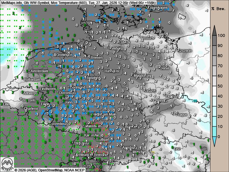 Die Wetter- / Temperaturkarten für Samstagnachmittag sowie Sonntag- und Dienstagmittag nach GFS: