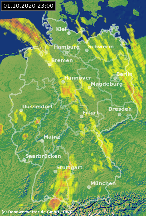 Radarbild von Donnerstag, 01.10.2020 um 23.00 Uhr