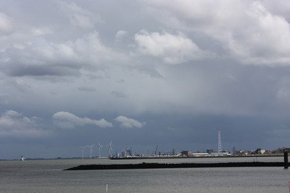 Sturmtief Burkhard gefolgt von Sturmtief Christian ziehen bis Montagabend über Deutschland hinweg. Sturmböen sind im Westen und Norden und in den Mittelgebirgen am Sonntagnachmittag und im Laufe des Montags zu erwarten. Orkanböen werden auf der offenen Nordsee erwartet. Die Bilder zeigen Cuxhaven an der Nordseeküste bei starkem Wind.