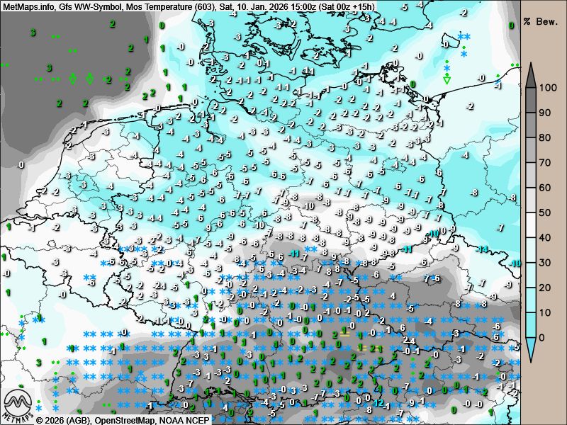 Gleichzeitig setzt sich die Kaltluft langsam in Richtung Alpen durch. Insgesamt beruhigt sich die Wetterlage schrittweise.
