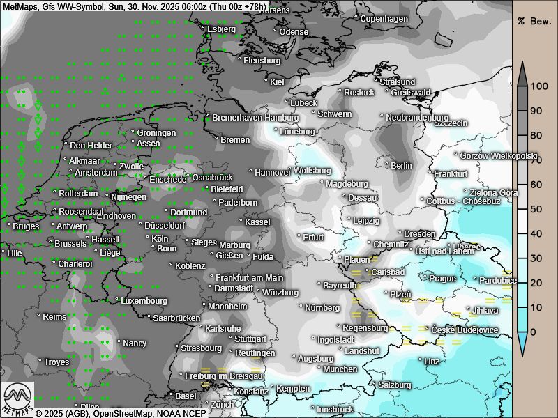 Die Warmfront von Tief "Yonatan" überquert uns heute und morgen von Westen her.