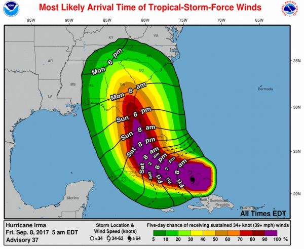 Alle Modelle zeigen nun den Landfall in Florida (wahrscheinlich Keys - Miami) am Samstag. Vermutlich als Kategorie 4 Sturm. Vorher wird er die Bahamas und Kuba mit Wind und Regen überziehen.