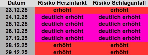 Das Einfließen kühlerer Luftmassen sorgt in der Weihnachtswoche für erhöhte wetterbedingte Schlaganfall- und Herzinfarktrisiken.