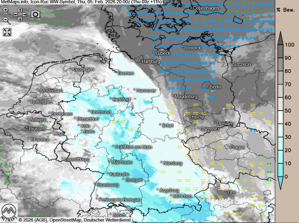 Die Wetterkarten nach ICON-RUC für 16:00, 20:00 und 23:00 Uhr: