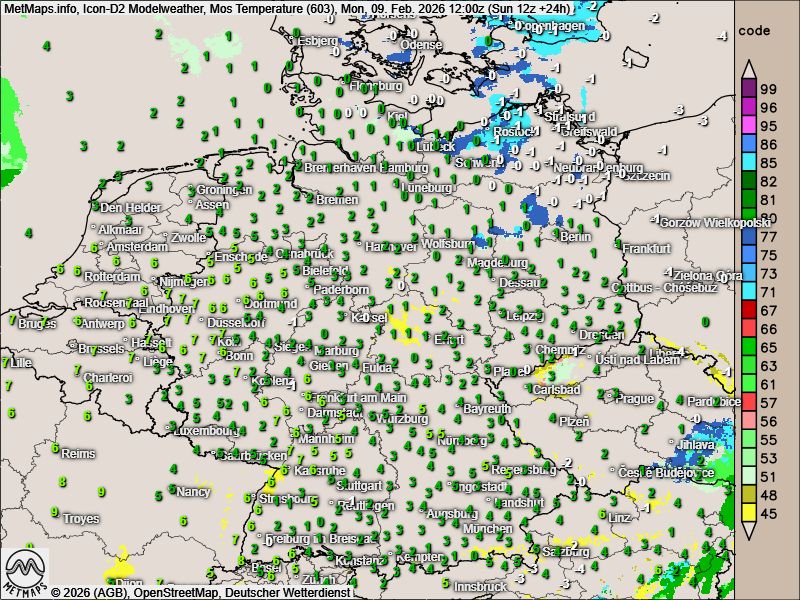 Bei Temperaturen knapp unter 0 Grad C treten verbreitet leichter Schneefall, gefrierender Sprühregen sowie Schneegriesel auf. Zusätzlich kommt es regional zu eingeschränkter Sicht durch Nebel, der stellenweise dichter ausfallen kann. Autofahrer und Fußgänger sollten erhöhte Vorsicht walten lassen.
