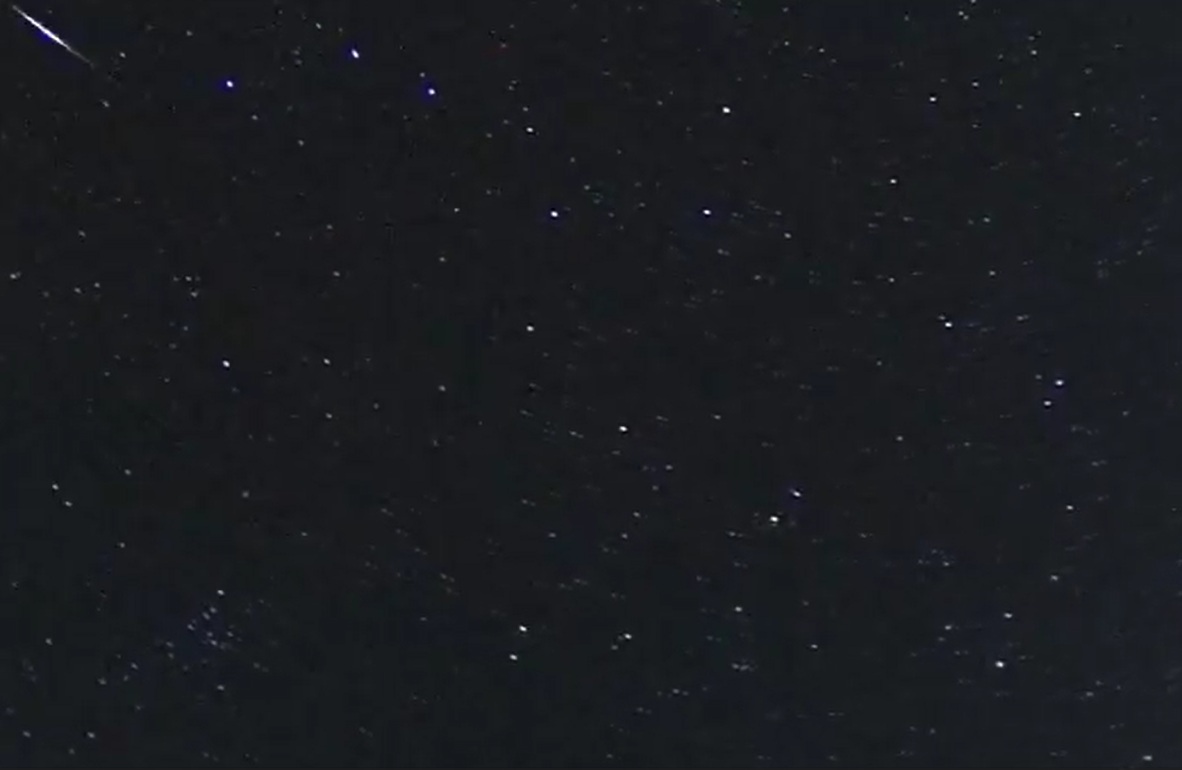 Ein aktueller Ausschnitt der Nachtkamera im donnerwetter.de-Wetterpark in der Eifel zeigt bereits mehrere dieser Sternschnuppen aus der vergangenen Nacht. Neben den Meteoren sind auch einige Flugzeuge im Bild zu erkennen, die sich durch gleichmäßige Bewegungen und Blinklichter unterscheiden lassen.