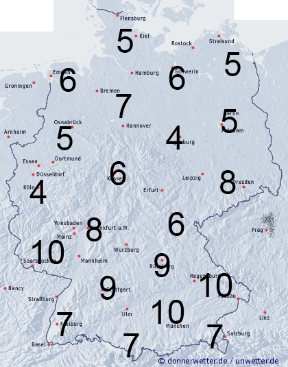 In Deutschland sorgen Regen und Schauer für eine Benetzungsdauer von 4 bis 10 Stunden.