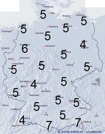 Von Westen ziehen dichtere Wolken übers Land, die örtlich für Regengüsse sorgen können. Sonst entsteht Benetzung durch nächtlichen Strahlungstau. Die Benetzungsdauer liegt in Deutschland allgemein zwischen 4 und 7 Stunden, kann allerdings in windgeschützten Bereichen außerhalb geschlossener Ortschaften deutlich nach oben abweichen.