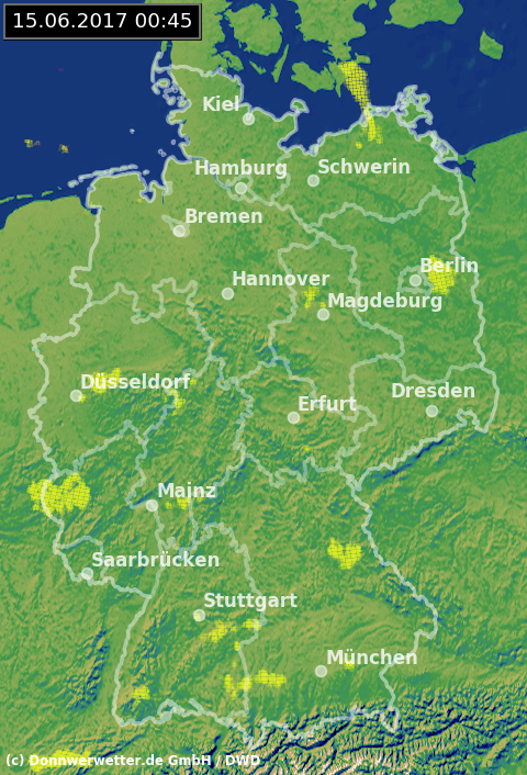 Heute ziehen im Laufe des Nachmittags wieder vermehrt teils kräftige gewittrige Regengüsse von Frankreich und Be-Ne-Lux ins Land herein. Die Niederschlagsmengen können dabei sehr unterschiedlich ausfallen. Örtlich sind Mengen von deutlich über 10 Liter pro Quadratmeter möglich.