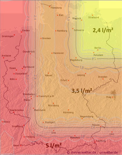 Vollständig trocken blieb es hingegen in Teilen des Bayrischen Waldes, der Pfalz, des Münsterlandes, der Region Bremen und im Osten Sachsens.