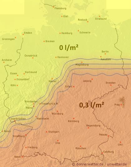 Aktuell hat es von Bonn im Westen über Kassel bis Berlin angefangen zu schneien. In wenigen Stunden erreicht der Schnee das Rhein-Main-Gebiet und Sachsen. Bis zum Abend ist er an den Alpen. Daher müssen Autofahrer mit erheblich Glätte rechnen. Das Radarbiold zeigt die Niederschlagsmenge bis Mitternacht und die Position der Wetterfrobnt um 6 Uhr.