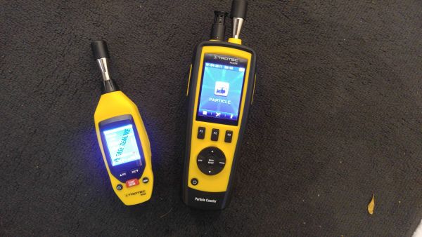 Die erste Messung erstreckte sich zwischen 10 und 13 Uhr, also zur "Büro-Rush-Hour". Nicht nur bei der Verwendung des Laserdruckers schnellte die Partikelkurve zeitweise nach oben; auch der Staubsauger und aufgewirbelte Staub einer Reinigungsfirma, die während der Messung bei uns tätig war, sowie der Dampf aus einer elektronischen Zigarette eines Mitarbeiters trieb die Partikelwerte immer wieder deutlich nach oben.
