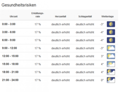 Zum Teil deutlich erhöhte Schlaganfall- und Herzinfarktrisiken in den kommenden Tagen.