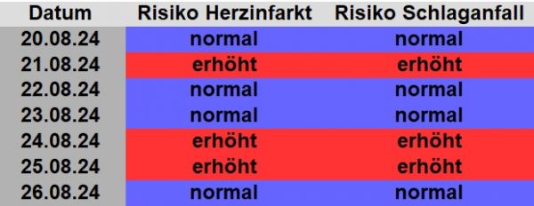 Unser Herz- / Kreislaufwetter bis zum 26.08.2024.