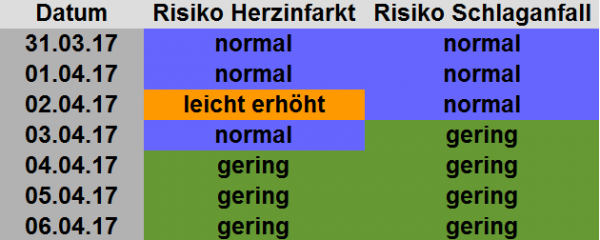 Die Schlaganfall- und Herzinfarktrisiken bis 06.04.2017