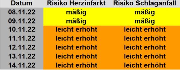 Ein stabiles Hoch sorgt über weite Teile der Woche für überschaubare oder leicht erhöhte Schlaganfall- und Herzinfarktrisiken.