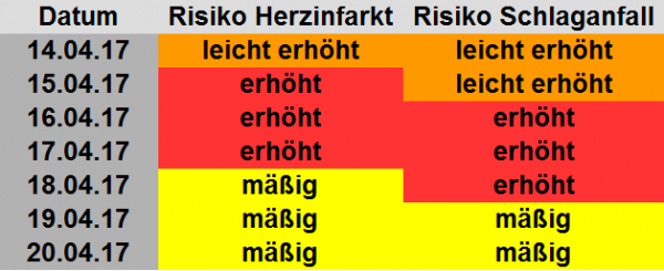 Die Schlaganfall- und Herzinfarktrisiken bis zum 20.04.2017