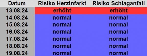 Die Schlaganfall- und Herzinfarktrisiken bis zum 19.08.2024.
