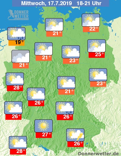 Die Temperaturen liegen bei Werten um 19 bis 28 Grad.