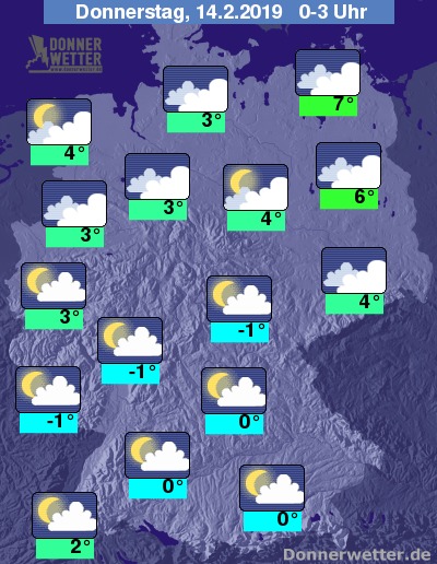 In der Nacht bleibt der Himmel in der Nordhälfte zunächst noch stark bewölkt, im weiteren Verlauf lockern die Wolken hier aber zunehmend auf. Nur entlang der Oder hält sich über die gesamte Nacht eine meist geschlossene Wolkendecke. Im Süden ist der Himmel überwiegend locker bewölkt. Schauer sind in der Nacht nicht zu erwarten.