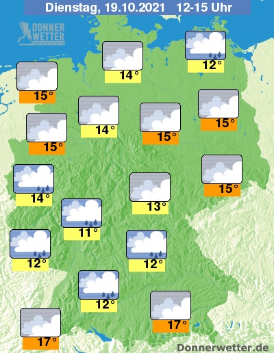 Heute Nachmittag ist es über dem Land verbreitet stark bewölkt oder bedeckt, dabei fällt gebietsweise auch Regen. Auflockerungen bleiben dagegen selten. Die Temperatur liegt bei 11 Grad am Westerwald und bis 17 Grad im Berchtesgadener Land.