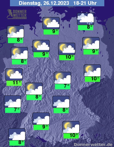 Heute Abend ist es vielerorts aufgelockert, teilweise aber auch dicht bewölkt, dabei fällt nur noch ganz vereinzelt etwas Regen. Die Temperatur liegt bei 7 Grad in Saarbrücken und rund 11 Grad in Köln. Der Wind lässt verbreitet nach und weht lediglich an der Ostsee noch teils stürmisch.