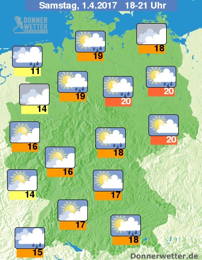 Heute Abend ist es im Alpenvorland und über dem Norden und Osten noch überwiegend stark bewölkt, dabei bilden sich zeitweise Schauer und selten auch einzelne Gewitter. Im übrigen Land ist es zumeist aufgelockert, teils auch nur locker bewölkt und weitgehend trocken. Die Temperatur liegt bei 11 bis 20 Grad.