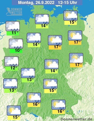 Heute Abend zieht es sich auch im Osten und Süden zu, es bleibt aber überwiegend trocken. Im übrigen Land fällt bei dichter Bewölkung zeitweise Regen. In den westlichen Landesteilen bilden sich vielerorts auch kräftige Schauer. Die Temperatur liegt bei 10 Grad in Münster und bis 18 Grad in Dresden.