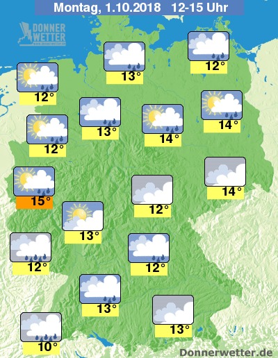 Am Mittag und frühen Nachmittag zeigt sich der Himmel über der Nordhälfte häufig wechselnd oder stark bewölkt, regional kann sich aber auch mal die Sonne zeigen. Im Süden der Republik bleibt es zumeist bedeckt. Mit regionalen Schauern muss immer wieder gerechnet werden.