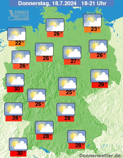 Heute Abend bleibt es weitgehend heiter oder auch aufgelockert bewölkt, dabei bleibt es trocken. Die Temperatur liegt bei 22 Grad an der Nordsee und bis zu 30 Grad entlang des Rheins.