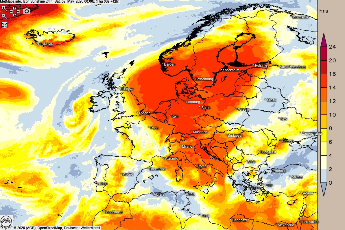 Der Maifeiertag wird ein perfekter Frühsommertag mit ungehindertem Sonnenschein von früh bis spät!