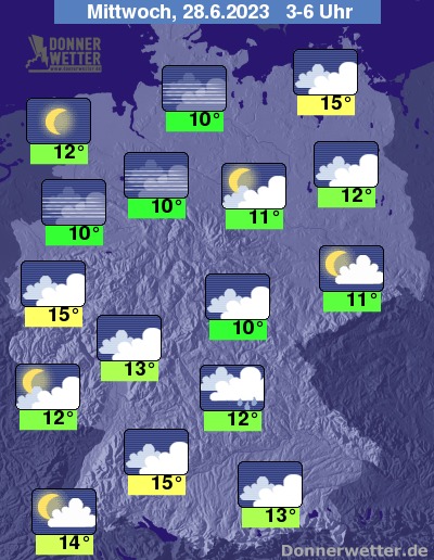 In der bevorstehenden Nacht klart der Himmel im Norden auf, sonst hält sich noch oft starke und teils aufgelockerte Bewölkung, dabei sind vereinzelt auch Schauer möglich. Zumeist bleibt es aber trocken bei Tiefstwerten von 15 Grad in Stuttgart und 10 Grad in Hannover.