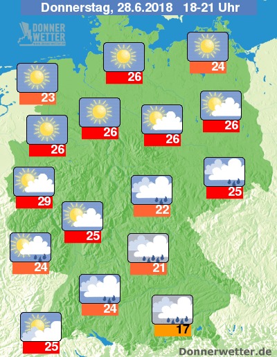 Ein Hochdrucksystem über dem Nordwesten Europas und ein Kaltlufttropen über Österreich und Tschechien stehen sich am Abend gegenüber. Daher kann vor allem im Norden und Westen des Landes noch bis zum Sonnenuntergang mit reichlich Sonnenschein gerechnet werden. Währenddessen breitet sich das Regengebiet von Südosten her weiter aus und südlich einer Linie Pfalz-Erzgebirge regnet es am Abend verbreitet, vor allem in weiten Teilen Bayerns fallen die Niederschläge zum Teil auch ergiebig aus.