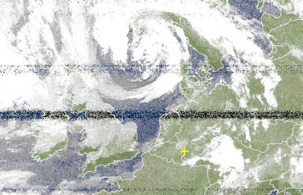Unser Satbild von heute Vormittag zeigt den Tiefdruckwirbel über der Nordsee eindrucksvoll. Der Wettereinfluss ist aber begrenzt (hauptsächlich SH):
