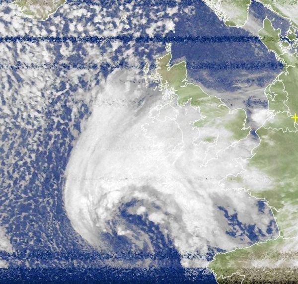 Das heutige Satellitenfoto zeigt den großen Wolkenwirbel des Tiefs "Gerd" westlich von Europa. Die dichten Regenwolken bringen heute zunächst besonders Irland, im Tagesverlauf auch England und Schottland sehr nasses und windiges Wetter, dabei ist mit verbreitet langanhaltendem und teils ergiebigem Regen zu rechnen.