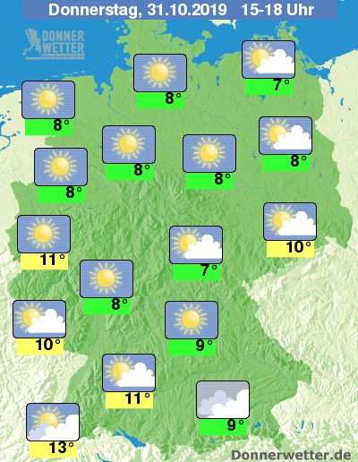 Am frühen Nachmittag lässt der Regen an den Alpen allmählich nach, die Wolkendecke bleibt allerdings noch ziemlich dicht. In den anderen Gebieten gibt es meistens strahlenden Sonnenschein. Lediglich einige lockere Wolkenfelder zieren teilweise den blauen Himmel.