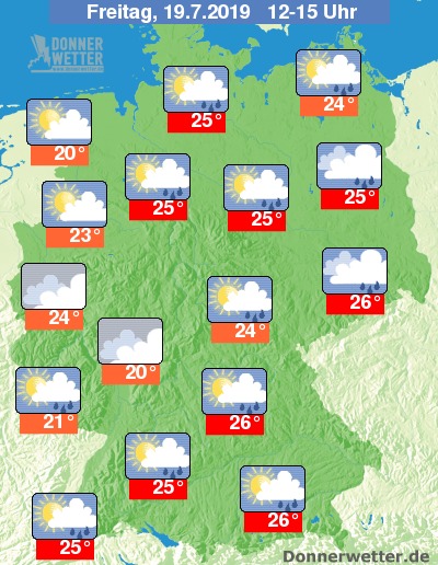 Die Temperaturen bewegen sich meist zwischen 20 Grad im Nordwesten und 26 Grad in Teilen Sachsens und Bayerns.