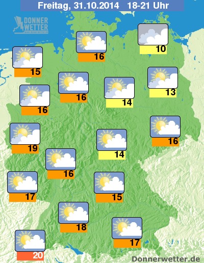 Die Halloween-Nacht ist gering bewölkt, lokal nebelig und gruselig bei 8-10 Grad C später im Verlauf der Nacht. Zu Beginn ist es sehr mild.