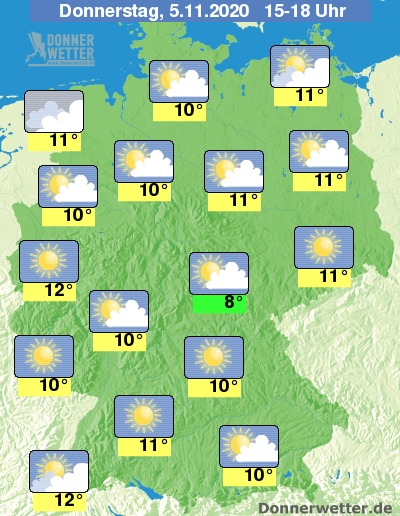 Bis zum frühen Abend ändert sich an der Wetter- und Temperaturverteilung wenig. Lediglich im Nordseeumfeld können die Wolkenschleier auch mal dichter werden.