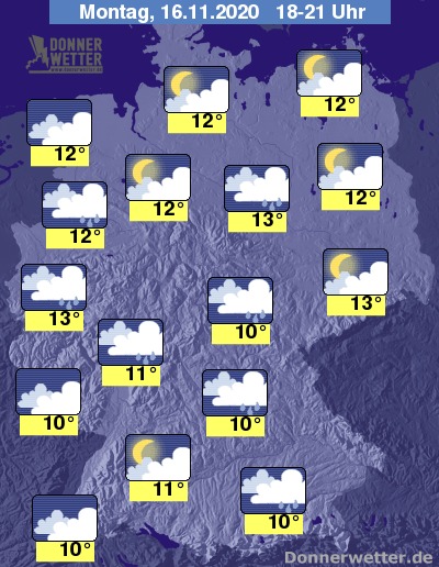 In den Abendstunden ziehen die Schauergebiete ostwärts ab, dahinter lockern die Wolken vielerorts auf. Vor allem in Schauern weht dabei ein mäßiger bis frischer, in Küstennähe und auf den Gipfeln auch teils stürmischer Wind aus Südwest.