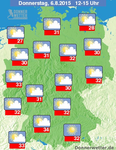 Vorhersagekarte für Donnerstag: es wird sonnig und warm