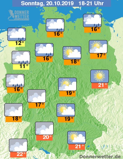 Heute Nachmittag ist es im Westen und Nordwesten, am Nachmittag auch über dem Norden Deutschlands bedeckt und es fällt zeitweise Regen, im übrigen Bundesgebiet ist es verbreitet locker bis stark bewölkt und dabei trocken. Die Temperatur liegt bei 11 Grad im Münsterland und bis zu 21 Grad im Breisgau.