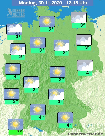 Temperaturen am Nachmittag um 2 bis 7 Grad.
